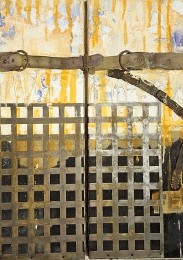 Es mi primera exposición sobre “desgarros” y reúne cuadros de diferentes épocas en los que las telas (metálicas o de saco, junto con elementos reciclados y técnicas de pintura acrílica y collage) sirven para sugerir enfoques sobre las redes sociales, las reglas de convivencia basadas en los derechos humanos y sobre agresiones a esos derechos (como las masacres de Gaza y de otros lugares y situaciones sociales con menor foco mediático)
